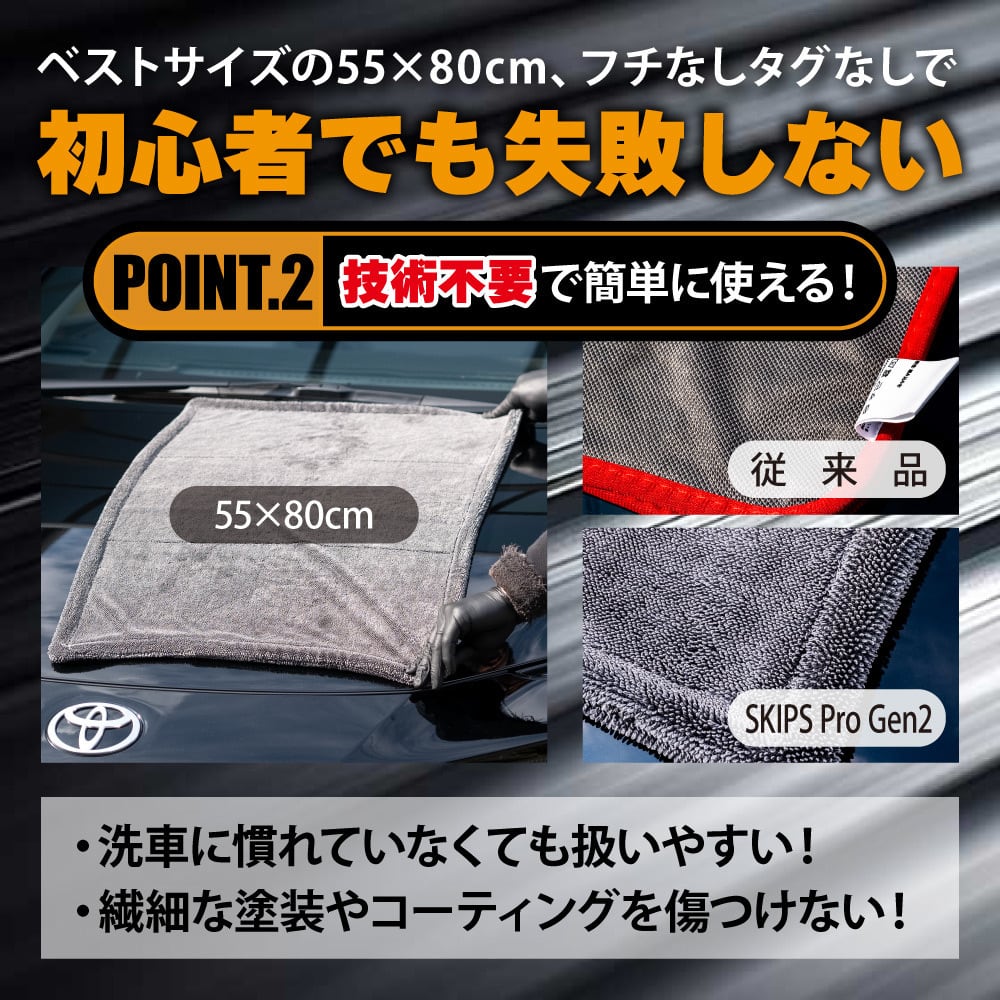 ・プロと共同開発: 洗車のプロと共に開発されたSKIPSは、最適なサイズとデザインで誰でも簡単に使いこなせます。